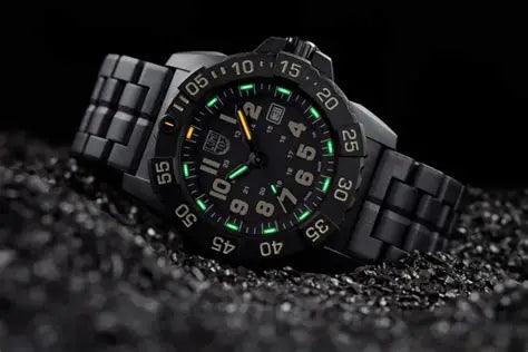 LUMINOX est »SUISSE MADE« Qualité pour des exigences maximales en matière de robustesse et d'excellente lisibilité. Chaque montre contient de minuscules éléments auto-lumineux développés par le leader mondial suisse des composants d'éclairage au tritium. Ces éléments lumineux (capsules en verre borosilicaté) sont solidement incrustés dans les aiguilles, les index et, le cas échéant, sur les lunettes des montres. Que ce soit au crépuscule du matin ou en plongée et même dans l'obscurité totale. L'éclairage indépendant du courant indique l'heure en un coup d'œil - quelles que soient les conditions d'éclairage, sans être chargé par la lumière du jour, sans appuyer sur un bouton. Avec votre nouvelle montre-bracelet Luminox de la série Neavy Seal 45mm 20ATM et le numéro de modèle XS.3510 , le rapport qualité-prix est tout simplement correct.